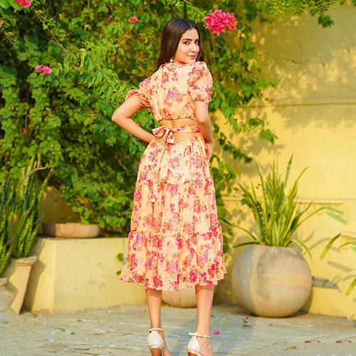 Be the first to review “Peach Flora Chiffon Maxi Dress” Cancel reply