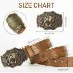 This belt for mens imitation leather captivates with its rich, vintage brown hue and detailed embossing, offering an air of antiquity and sophistication. The intricate patterns carved into the belt give it a distinctive look that pairs wonderfully with both casual denim and formal attire, enhancing any ensemble with a classic, timeless charm.
